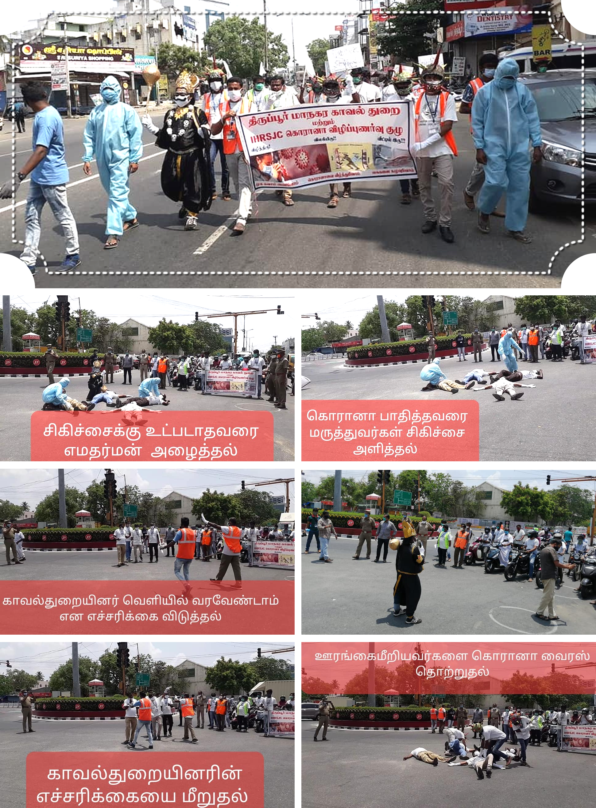 | Tiruppur - Corona Awareness Programs along with Tiruppur City Police. |